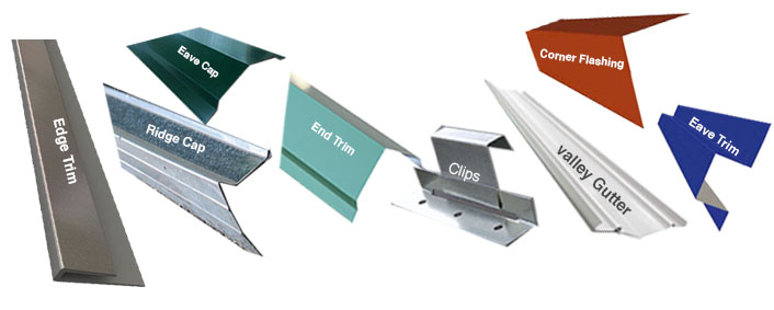 These are produced to customer’s specification. The accessories include Valley, Ridge Cap, Eave Trim, Back Trim, Sheet Valley, Clip etc.